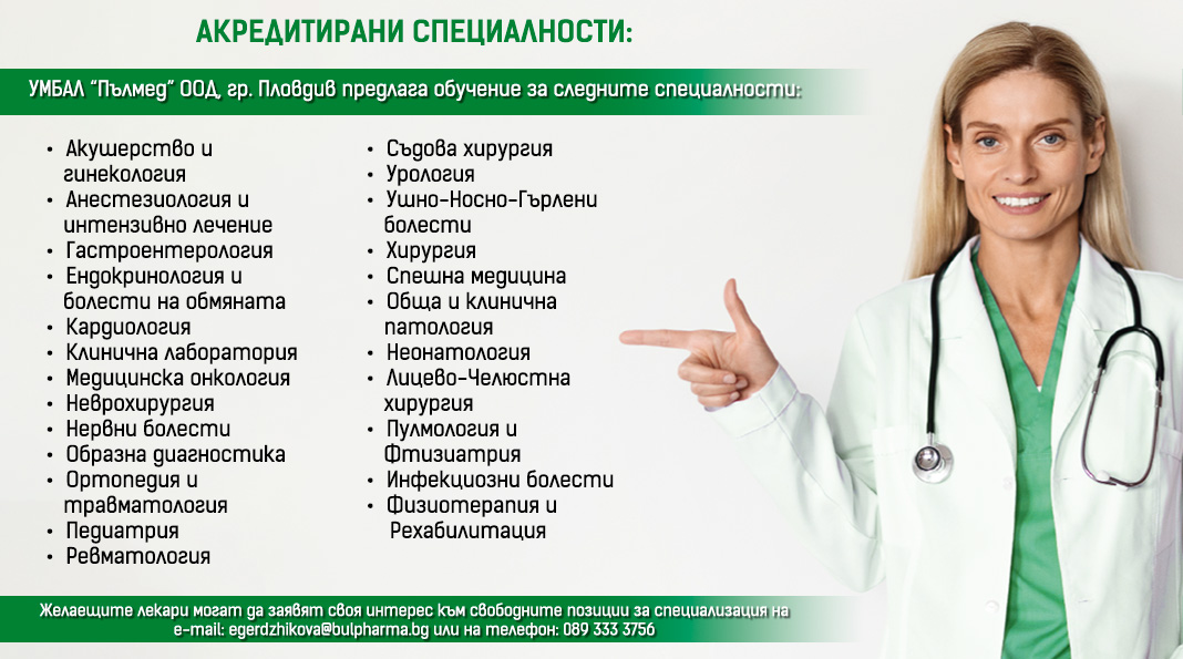 „Булфарма“ предлага европейски стандарти за специализанти в болниците си в гр. Пловдив, Велинград и Пещера